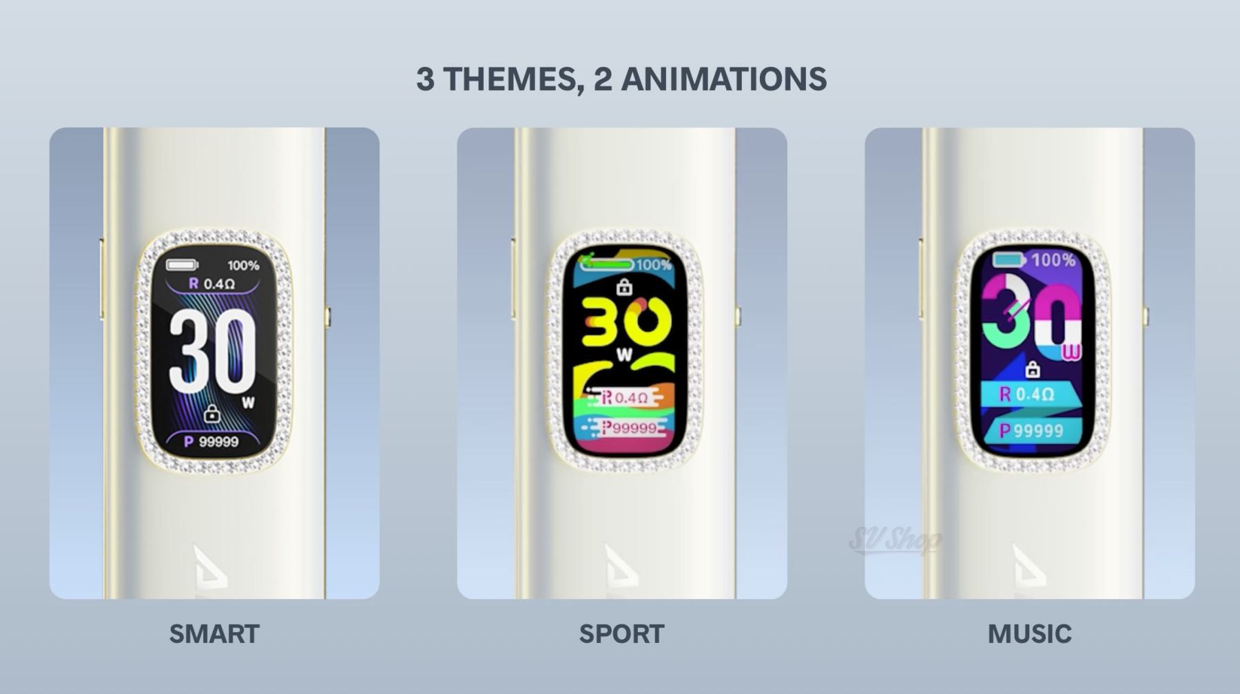 - Дисплей: яскравий 0,96″ TFT‑екран з трьома темами та двома анімаціями — Smart, Sport, Music.